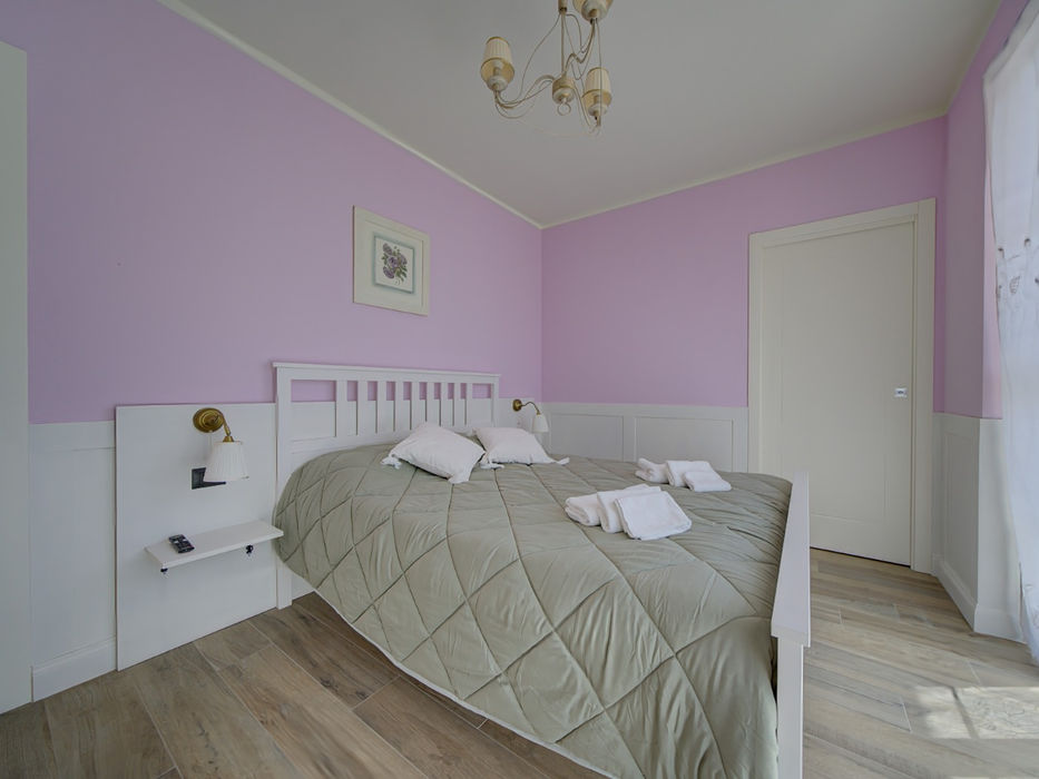 La camera prende il nome dalla Rosa Damascena, fiore prezioso e antico, simbolo di raffinatezza e profumo delicato. L’atmosfera richiama questo carattere romantico con boiserie artigianale fatta a mano e dettagli eleganti.